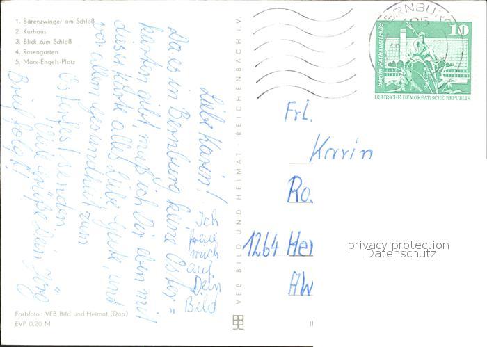 72328910 alte Postkarte Bernburg Saale Baerenzwinger Schloss Kurhaus Rosengarten Marx Engels Platz postalisch gelaufen Erhaltung siehe scans KatCode: 11110015089030