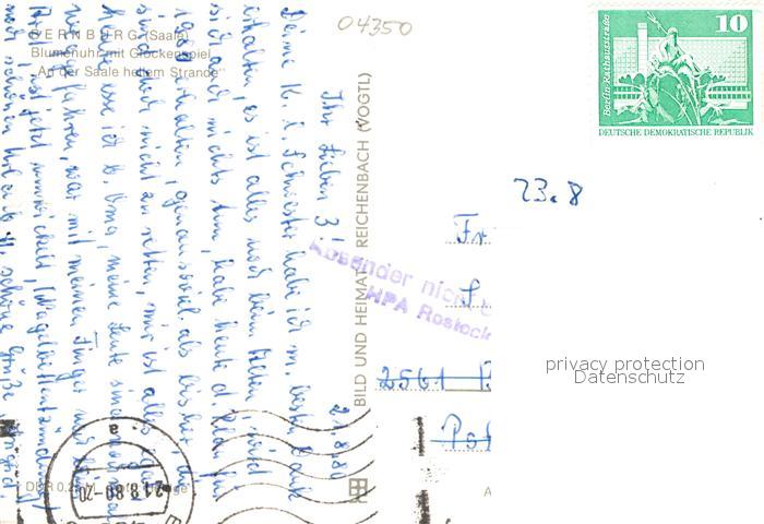 72968667 alte Postkarte Bernburg Saale Blumenuhr mit Glockenspiel postalisch gelaufen Erhaltung siehe scans [FriedD77] KatCode: 11110015089030