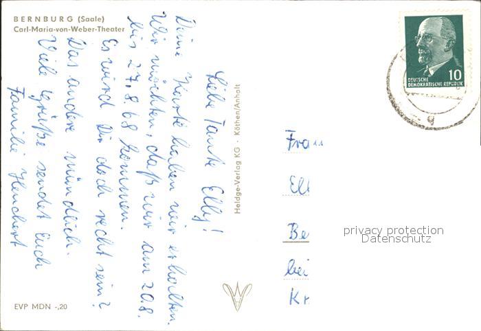 72092904 alte Postkarte Bernburg Saale Carl Maria von Weber Theater postalisch gelaufen Erhaltung siehe scans KatCode: 11110015089030