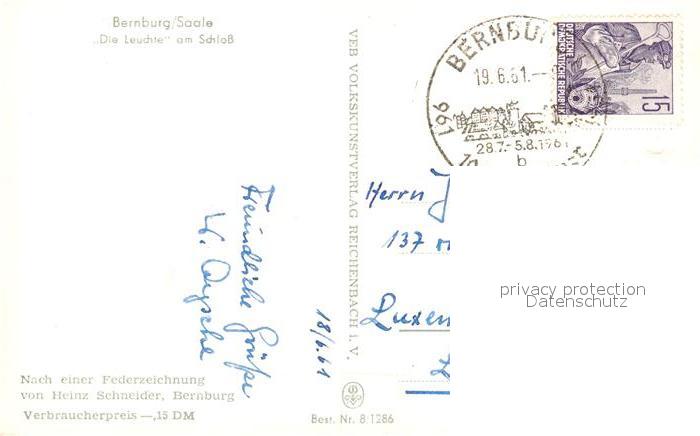 73031466 alte Postkarte Bernburg Saale Die Leuchte am Schloss postalisch gelaufen Erhaltung siehe scans [WerneD78] KatCode: 11110015089030