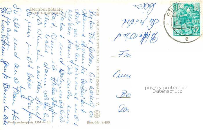 72647264 alte Postkarte Bernburg Saale FDGB-Kuranstalt postalisch gelaufen Erhaltung siehe scans [NatalD47] KatCode: 11110015089030