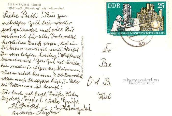 73084489 alte Postkarte Bernburg Saale HO Eiscafe Baerenburg mit Indianerdorf postalisch gelaufen Erhaltung siehe scans [FriedD77] KatCode: 11110015089030