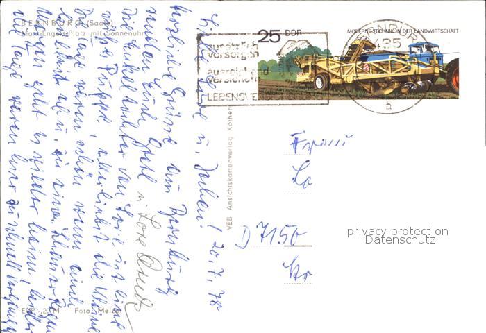 72168518 alte Postkarte Bernburg Saale Marx Engels Platz mit Sonnenuhr postalisch gelaufen Erhaltung siehe scans KatCode: 11110015089030