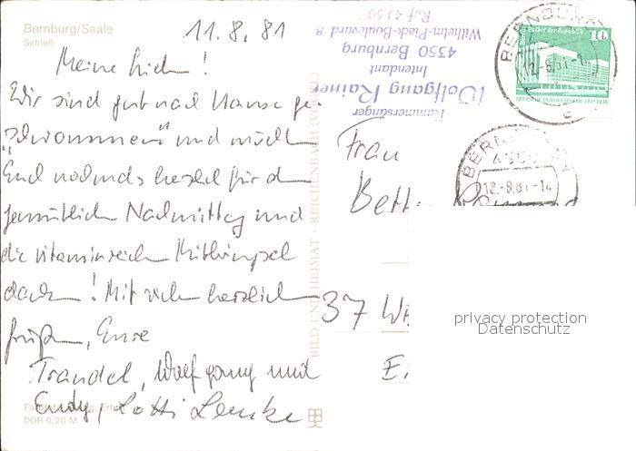 72333165 alte Postkarte Bernburg Saale Schloss postalisch gelaufen Erhaltung siehe scans KatCode: 11110015089030