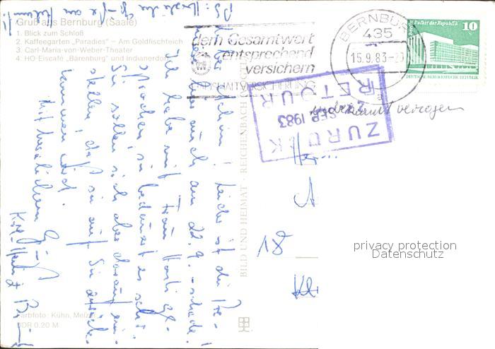 72127692 alte Postkarte Bernburg Saale Schloss Cafe Paradies und Baerenburg postalisch gelaufen Erhaltung siehe scans KatCode: 11110015089030