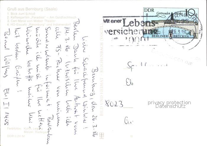 72061694 alte Postkarte Bernburg Saale Schloss Cafe Paradies postalisch gelaufen Erhaltung siehe scans KatCode: 11110015089030