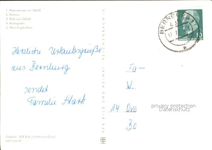 72015772 alte Postkarte Bernburg Saale Schloss Rosengarten Marx-Engels-Platz postalisch gelaufen Erhaltung siehe scans KatCode: 11110015089030