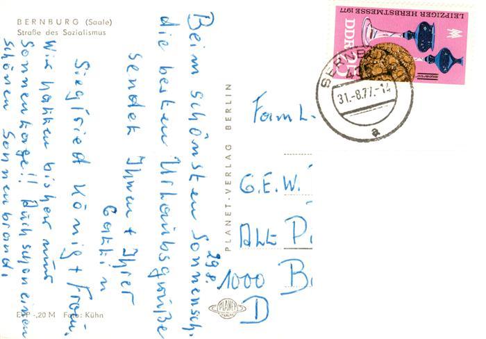 73869118 alte Postkarte Bernburg Saale Strasse des Sozialismus postalisch gelaufen Erhaltung siehe scans [FriedD77] KatCode: 11110015089030