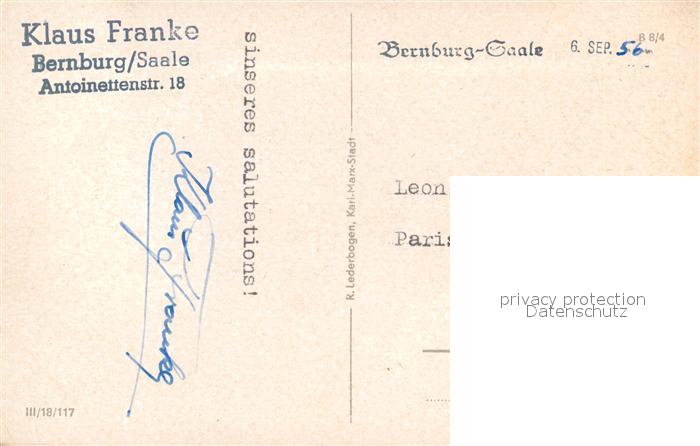 43492837 alte Postkarte Bernburg Saale SVA Kuranstalt postalisch gelaufen Erhaltung siehe scans [LiesaD40] KatCode: 11110015089030