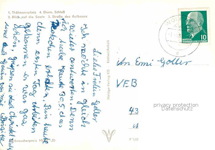 72633237 alte Postkarte Bernburg Saale Thaelmannplatz Ehemaliges Schloss Saale Strasse des Aufbaues postalisch gelaufen Erhaltung siehe scans [FriedD77] KatCode: 11110015089030