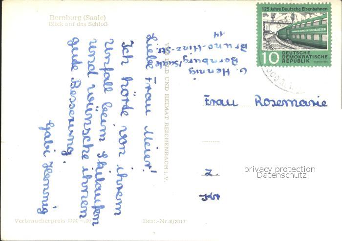 72085436 alte Postkarte Bernburg Saale Uferpartie am Fluss Blick zum Schloss postalisch gelaufen Erhaltung siehe scans KatCode: 11110015089030