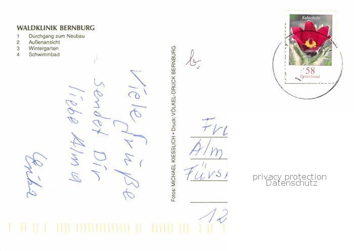 72856667 alte Postkarte Bernburg Saale Waldklinik Schwimmbad Wintergarten postalisch gelaufen Erhaltung siehe scans [LiesaD40] KatCode: 11110015089030