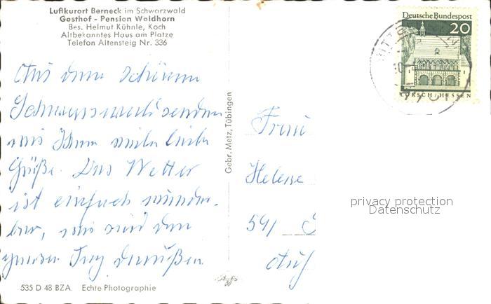 72189065 alte Postkarte Berneck Alpirsbach Gasthof Pension Waldhorn postalisch gelaufen Erhaltung siehe scans KatCode: 11110008237002