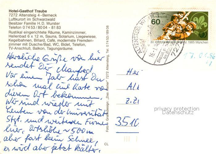 73070616 alte Postkarte Berneck Altensteig Hotel Gasthof Traube im Schwarzwald postalisch gelaufen Erhaltung siehe scans [FriedD77] KatCode: 11110008235006