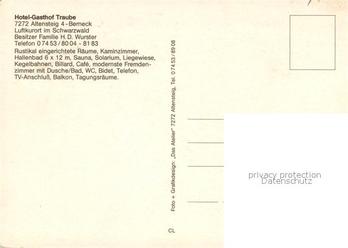 73642178 Berneck Altensteig Hotel Gasthof Traube postalisch nicht gelaufen Erhaltung siehe scans [WerneD78] KatCode: 11110008235006
