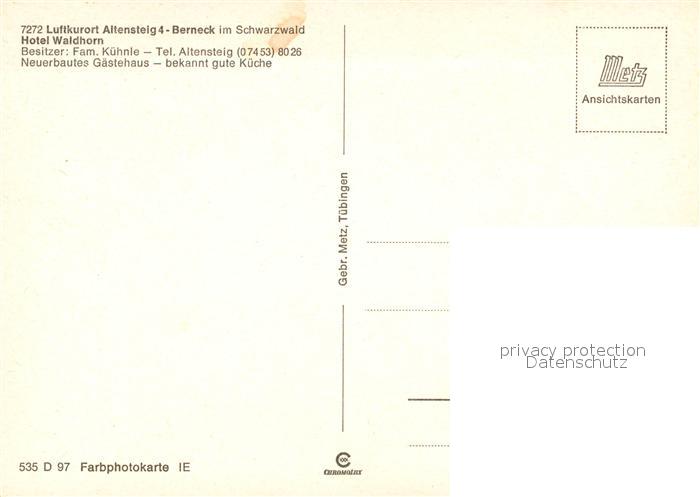 73270517 Berneck Altensteig Teilansicht Hotel Waldhorn postalisch nicht gelaufen Erhaltung siehe scans [WerneD78] KatCode: 11110008235006