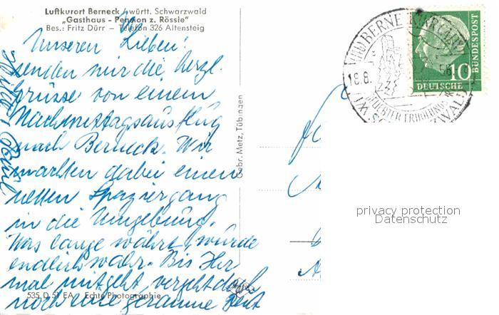 72786214 alte Postkarte Berneck Altensteig Teilansicht Luftkurort Gasthaus Pension zum Roessle postalisch gelaufen Erhaltung siehe scans [FriedD77] KatCode: 11110008235006