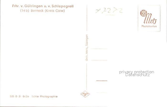 41768212 Berneck Altensteig Waldpartie Burg Berneck Frhr von Gueltlingen und von Schlepegrell postalisch nicht gelaufen Erhaltung siehe scans KatCode: 11110008235006