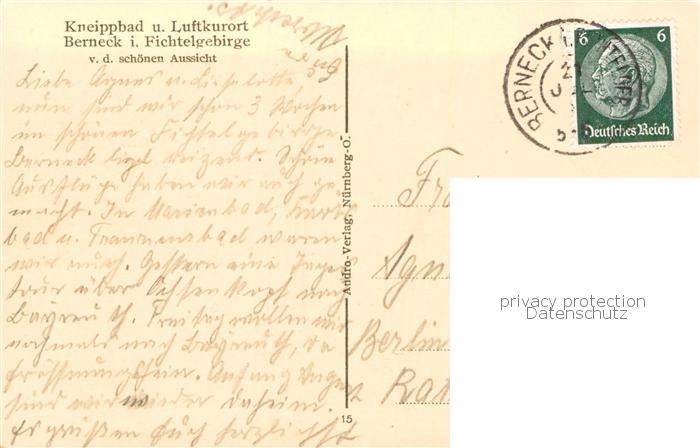 73806352 alte Postkarte Berneck Bad Fichtelgebirge Panorama von der schoenen Aussicht postalisch gelaufen Erhaltung siehe scans [WerneD78] KatCode: 11110009472116