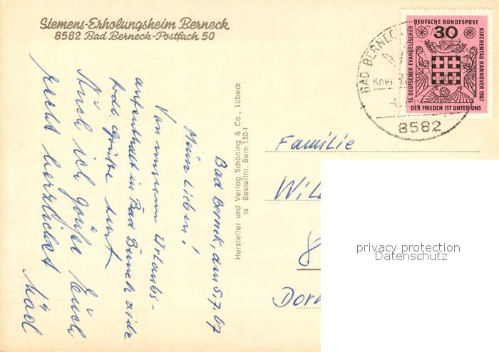 73195985 alte Postkarte Berneck Bad Siemens Erholungsheim postalisch gelaufen Erhaltung siehe scans [KathaD81] KatCode: 11110009472116