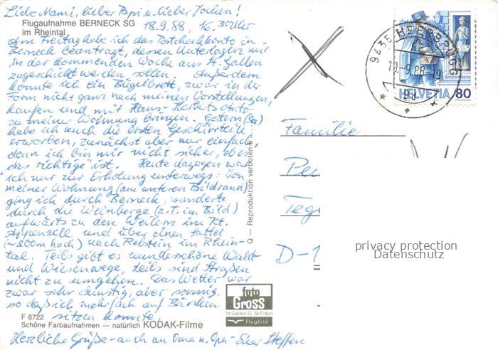 34145955 alte Postkarte Berneck Rheintal SG Fliegeraufnahme postalisch gelaufen Erhaltung siehe scans [WerneD78] KatCode: 11470190555566