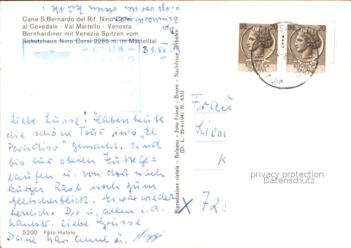 alte Postkarte Bernhardiner Cane S. Bernardo Rifugio Nino Corsi Val Martello postalisch gelaufen Erhaltung siehe scans [PaolaD17 kt110box]