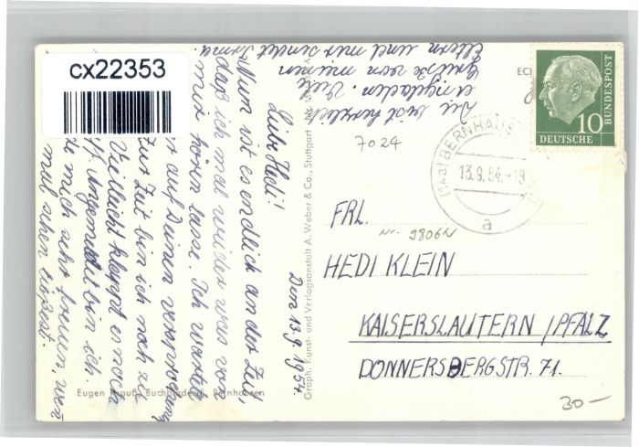 30739200 alte Postkarte Bernhausen Filderstadt Hauptstrasse Schule Plienungerstrasse postalisch gelaufen KatCode: 11110008116077