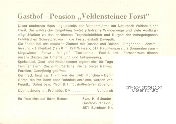 73654014 Bernheck Gasthof Pension Veldensteiner Forst Gastraum Hallenbad postalisch nicht gelaufen Werbekarte (keine Postkarte) Erhaltung siehe scans [WerneD78] KatCode: 11110009472177