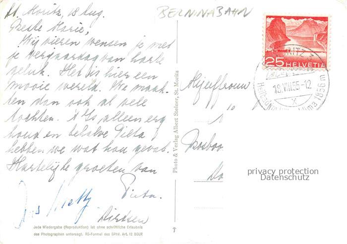 34146267 alte Postkarte Berninabahn Pontresina Eisenbahn GR postalisch gelaufen Erhaltung siehe scans [FriedD77] KatCode: 11470360910016