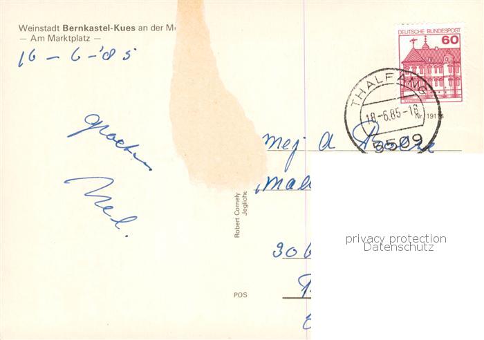 73813281 alte Postkarte Bernkastel-Kues Berncastel Am Marktplatz postalisch gelaufen Erhaltung siehe scans [WerneD78] KatCode: 11110007231008