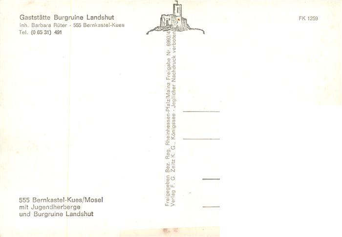 73886218 Bernkastel-Kues Berncastel Fliegeraufnahme mit Gaststaette Burgruine Landskron postalisch nicht gelaufen Erhaltung siehe scans [WerneD78] KatCode: 11110007231008