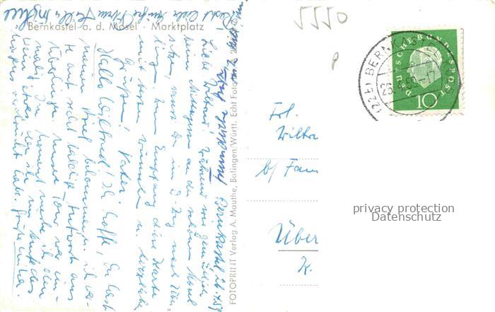 74087602 alte Postkarte BERNKASTEL-KUES Berncastel Marktplatz Brunnen Fachwerkhaeuser postalisch gelaufen Erhaltung siehe scans [FriedD77] KatCode: 11110007231008