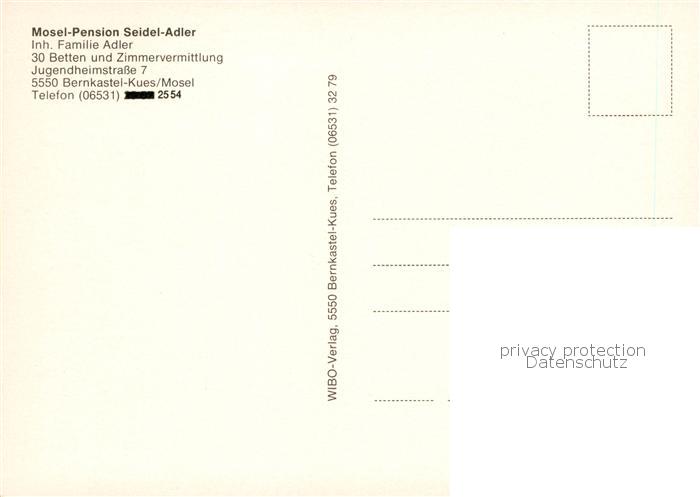 73844903 Bernkastel-Kues Berncastel Mosel Pension Seidel Adler Gaststube postalisch nicht gelaufen Erhaltung siehe scans [FriedD77] KatCode: 11110007231008
