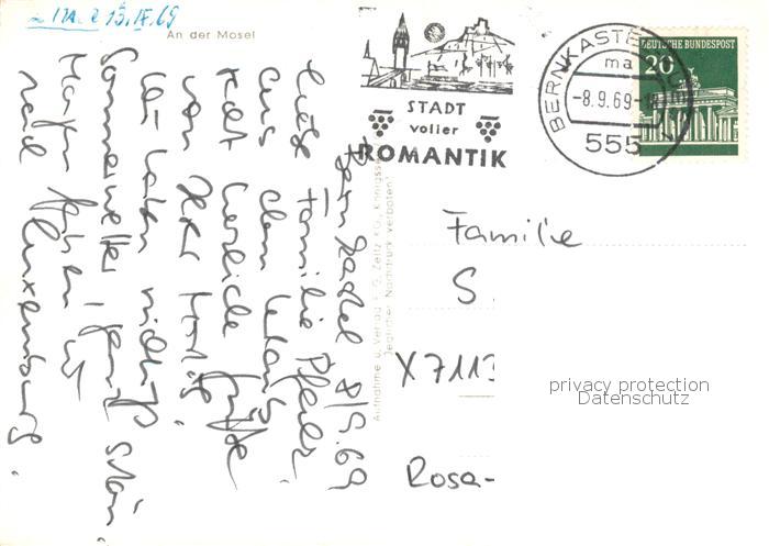 73859326 alte Postkarte Bernkastel-Kues Berncastel Partie am Ratskeller Altstadt Fachwerkhaeuser postalisch gelaufen Erhaltung siehe scans [FriedD77] KatCode: 11110007231008
