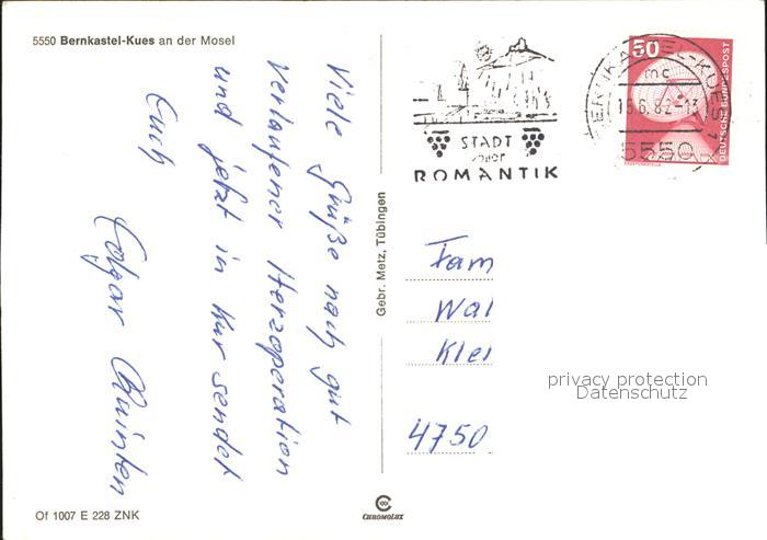 72306007 alte Postkarte BERNKASTEL-KUES Berncastel Rheinland-Pfalz postalisch gelaufen Erhaltung siehe scans KatCode: 11110007231008