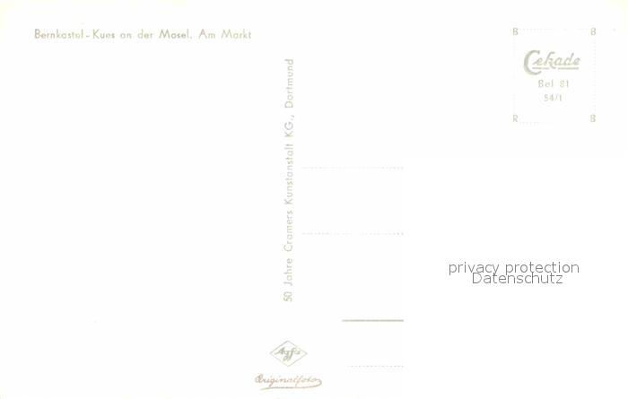 72758750 BERNKASTEL-KUES Berncastel Rheinland-Pfalz Am Markt postalisch nicht gelaufen Erhaltung siehe scans [WerneD78] KatCode: 11110007231008