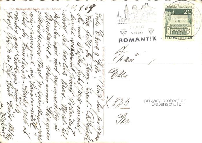 72420307 alte Postkarte BERNKASTEL-KUES Berncastel Rheinland-Pfalz an der Mosel postalisch gelaufen Erhaltung siehe scans KatCode: 11110007231008