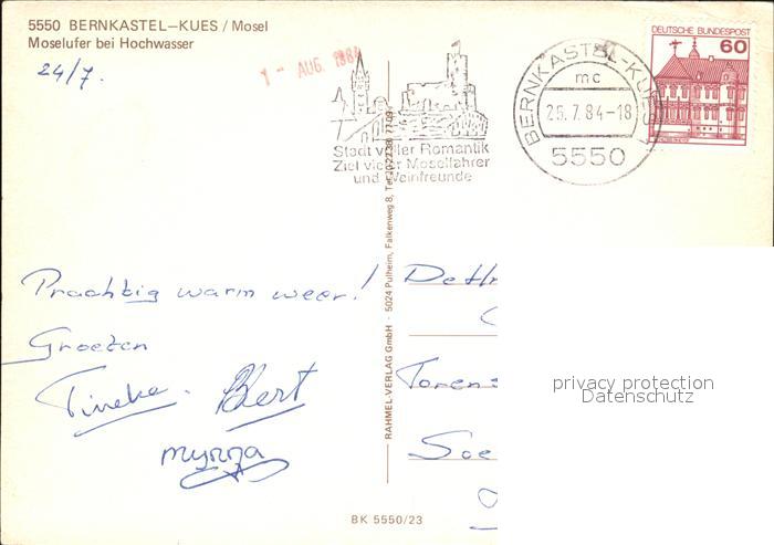 72469431 alte Postkarte BERNKASTEL-KUES Berncastel Rheinland-Pfalz bei Hochwasser Moselufer Schwaene postalisch gelaufen Erhaltung siehe scans KatCode: 11110007231008