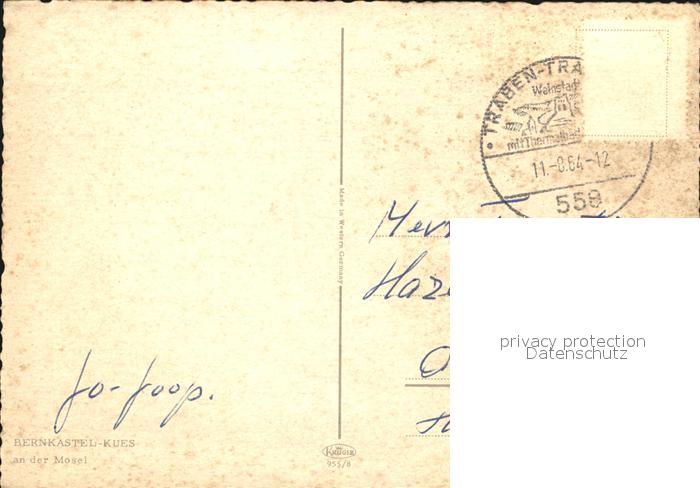 72606394 alte Postkarte BERNKASTEL-KUES Berncastel Rheinland-Pfalz Blick auf die Mosel und den Ort postalisch gelaufen Erhaltung siehe scans [AndreD76] KatCode: 11110007231008