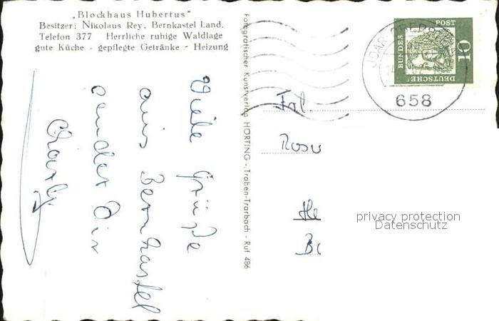 72506543 alte Postkarte BERNKASTEL-KUES Berncastel Rheinland-Pfalz Blockhaus Hubertus postalisch gelaufen Erhaltung siehe scans KatCode: 11110007231008