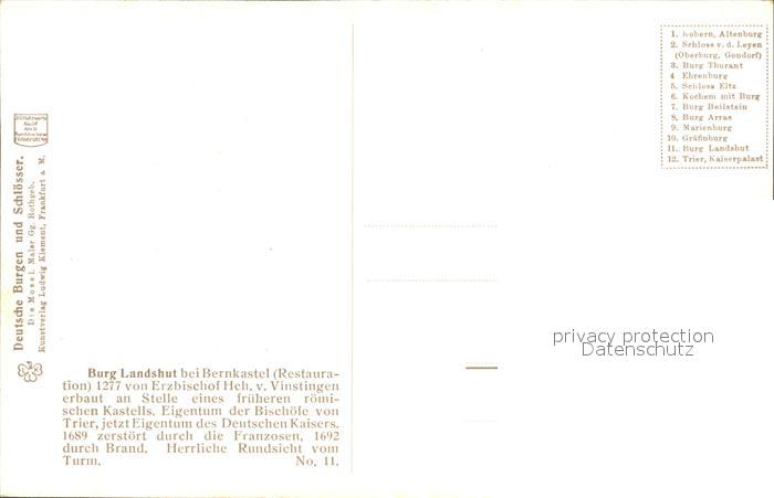 72222348 BERNKASTEL-KUES Berncastel Rheinland-Pfalz Burg Landshut postalisch nicht gelaufen Erhaltung siehe scans KatCode: 11110007231008