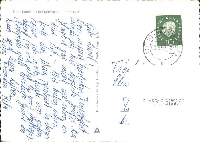72412489 alte Postkarte BERNKASTEL-KUES Berncastel Rheinland-Pfalz Burg Landshut Mosel postalisch gelaufen Erhaltung siehe scans KatCode: 11110007231008
