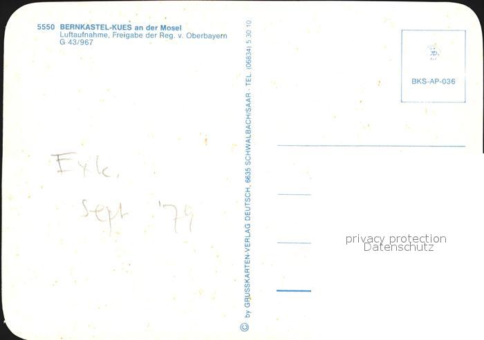 72419607 BERNKASTEL-KUES Berncastel Rheinland-Pfalz Burgruine Mosel Bruecke Fliegeraufnahme postalisch nicht gelaufen Erhaltung siehe scans KatCode: 11110007231008