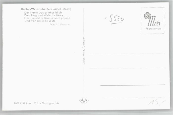 40681889 BERNKASTEL-KUES Berncastel Rheinland-Pfalz Doctor Weinstube postalisch nicht gelaufen Alte Ansichtskarte Postkarte Katcode 11110007231008