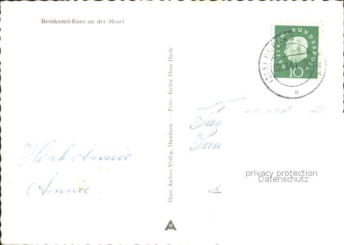 72174071 alte Postkarte BERNKASTEL-KUES Berncastel Rheinland-Pfalz Fliegeraufnahme postalisch gelaufen Erhaltung siehe scans KatCode: 11110007231008