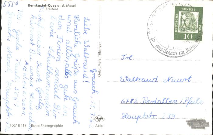 41278878 BERNKASTEL-KUES Berncastel Rheinland-Pfalz Freibad postalisch gelaufen gute Erhaltung Alte Ansichtskarte Postkarte alte Postkarte hz_C Katcode 11110007231008