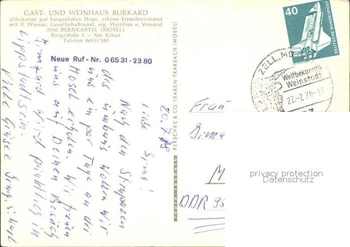 72139589 alte Postkarte BERNKASTEL-KUES Berncastel Rheinland-Pfalz Gasthaus Burkard postalisch gelaufen Erhaltung siehe scans KatCode: 11110007231008