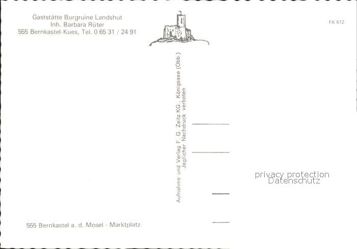 72326892 BERNKASTEL-KUES Berncastel Rheinland-Pfalz Gaststaette Burgruine Landshut postalisch nicht gelaufen Erhaltung siehe scans KatCode: 11110007231008