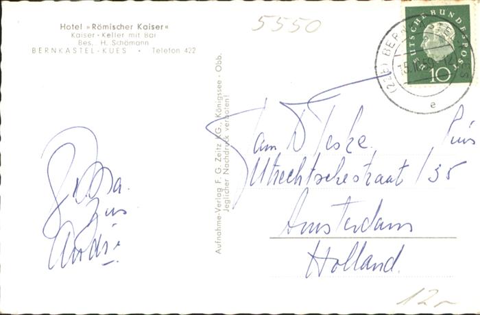 40920139 BERNKASTEL-KUES Berncastel Rheinland-Pfalz Hotel Roemischer Kaiser postalisch gelaufen Alte Ansichtskarte Postkarte alte Postkarte Katcode 11110007231008