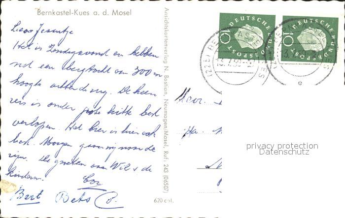72419401 alte Postkarte BERNKASTEL-KUES Berncastel Rheinland-Pfalz Kleines Haus Panorama Moselpartie Fachwerkhaus postalisch gelaufen Erhaltung siehe scans KatCode: 11110007231008